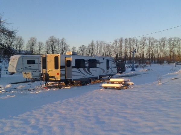 The forecast was for mid 30's in the daytime and dipping to mid 20's at night and all was clear when we decided to camp for our visit up north for Thanksgiving. We knew it could be a little "iffy" but decided to go prepared to re-winterize the TT if it was going to get too cold.