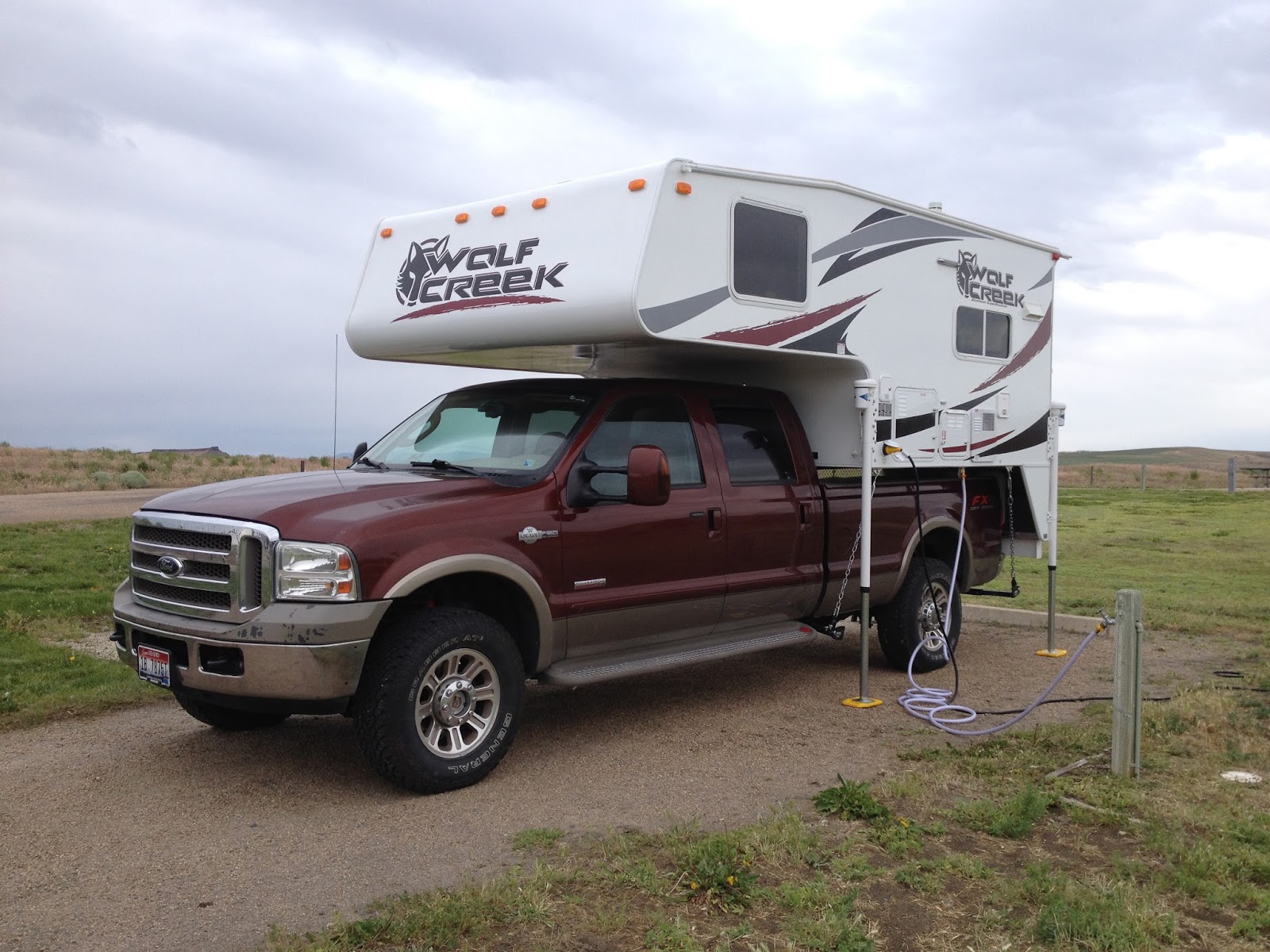 This puts me 1000 under the max rear rating of the actual 18 inch King Ranch wheels for my truck (7050), which are actually rated less than the tires (7300). Rear axle limit is rated at 10,000 and truck rear is listed at 7000 by Ford. The paper in the glove box stated 2815 as my slide-in camper limit, so I busted that by 5 lbs! We made lots of choices in favor of light weight stuff, primarily cooking eqt., so that had a significant impact in keeping weight to a minimum. The fresh water tank still has another ten gallons of capacity so we will go another 100-300 pounds over easily, but will still be under our rear wheel limit easily.
