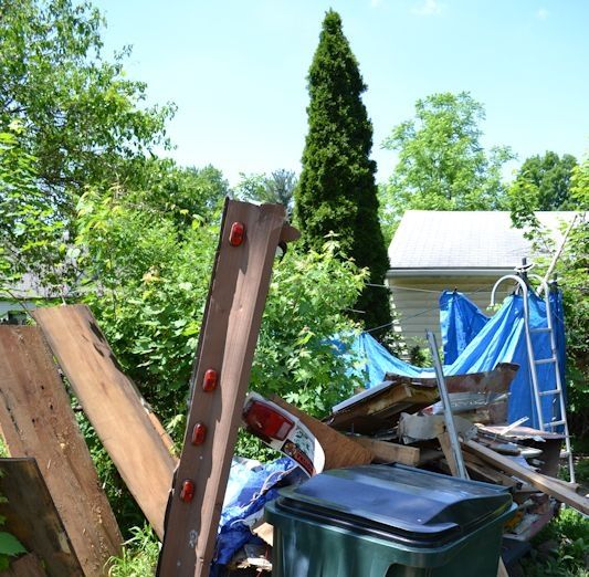 2) Looked at the pile of debris (there's a flat trailer under it) and trying to come up with uses for the debris. The rest will go out to the curb in the wheelie bin, will probably be done with it by Labor Day.